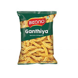 Bikano Ganthiya, 150g (5.29oz)Bikano Ganthiya, 150g (5.29oz)Gathiya is a fried Indian snack made from chickpea flour. It is a popular teatime snack. They are soft and crunchy like most other Indian snacks.